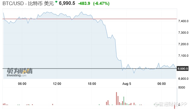 比特币24小时内下跌近500美元,凌晨一度跌破7000美元,最低至6926美元,为7月17日以来首次。其实,比特币也不是从隔夜开始调整,继连续上涨两周后,本周初已开始回调。