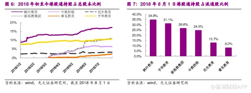 智通财经APP获悉,6月之后当教育板块开始调整时,大部分教育公司南下资金的持股比例仍在提升,更多是海外获利资金在出走,毕竟海外资金对汇率波动造成的收益影响更为敏感。而南下资金的增持也表明了其看好教育板块的态度。