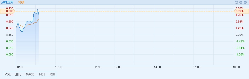 智通财经APP获悉,水泥行业步入旺季,水泥需求跟随复苏,华润水泥(01313)股价受提振。截至10时05分,涨5.09%,报价8.88港元,成交额为4099万港元。