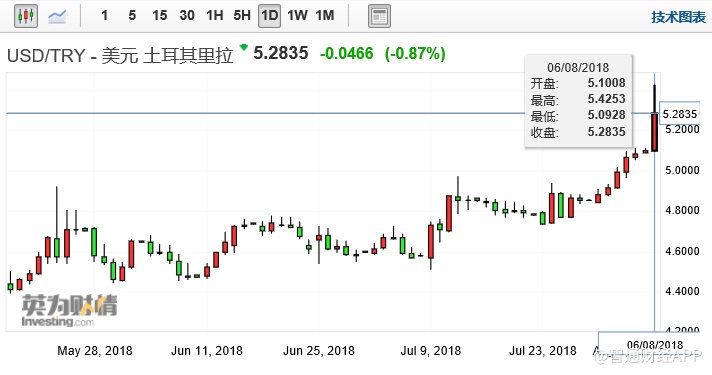 智通财经APP获悉,土耳其里拉兑美元8月6日重挫6.7%,创2008年10月以来最大盘中跌幅,并刷新盘中历史低点至5.4253,跌幅达2519点。