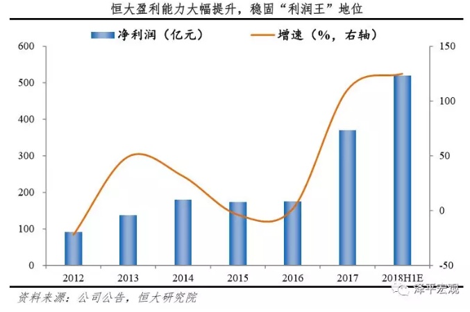 利润预期大幅增长,创行业历史最高记录。2018年上半年,恒大税后净利润预期较去年同期增长125%以上,核心业务净利润预期较去年同期增长100%以上,预计税后净利润超520亿,核心业务利润超546亿,均创行业有史以来最高纪录。