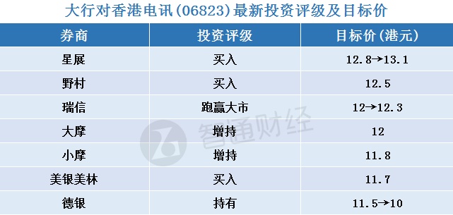 经智通财经APP整理,大行对香港电讯(06823)最新评级及目标价如下,