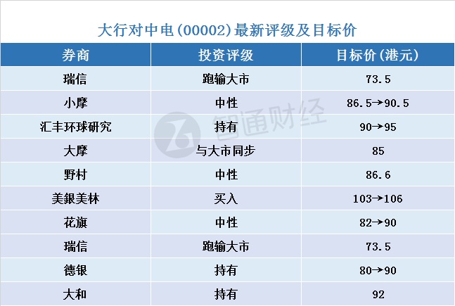 经智通财经APP整理,大行对中电的最新投资评级及目标价如下,