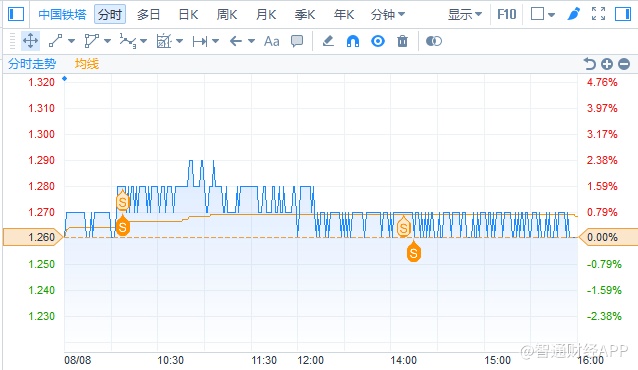8月8日,中国铁塔正式在港交所挂牌交易。上市首日收报每股1.26港元,全日维持1.26-1.29区间浮动,未跌穿招股价,市值达2172.99亿港元。