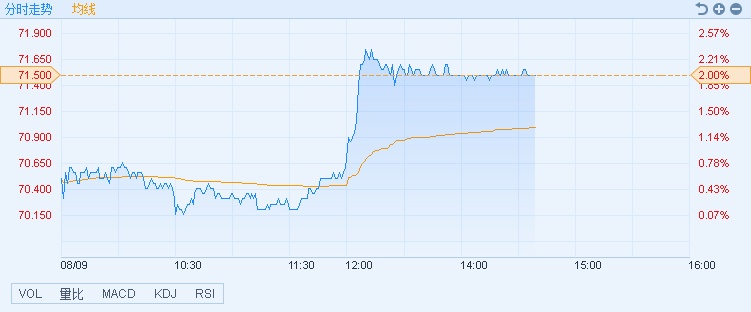 智通财经APP获悉,上半年净利增长4.7%至656.4亿元,中国移动(00941)午后股价直线拉升,截至14时38分,涨2%,报价71.5港元,成交额8.64亿。