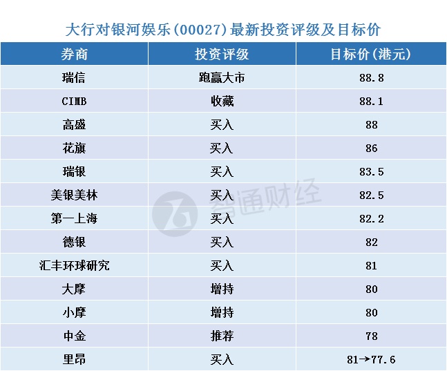 智通财经APP整理,大行对银河娱乐(00027)最新投资评级及目标价如下: