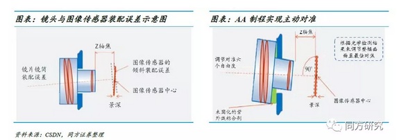 确保工艺精度,有效提升良率:与传统封装方式不同,AA制程不要求每个零件组装都打到局部最优,而是目标全局最优。AA制程装备在组装每个零配件时,首先检测被组装的半成品,并依据被组装半成品的实际情况主动对准,然后将下一个零配件组装到位,这类方式可有效的减小全部模组的装配公差。AA制程主动校准技术,可调理镜头对准至6个自由度(六轴式AA机)。通过调理相对位置和镜头歪斜,可确保拍照画面中心最清晰,使得画面四角拥有均匀的清晰度,有效的晋升摄像头产品一致性。这在对产品封装要求更高的双摄像头中尤其首要。