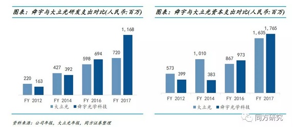 随着舜宇光学在研发投入上不断加码,公司近几年技术飞速升级及多元化发展,产品实力紧追龙头大立光。