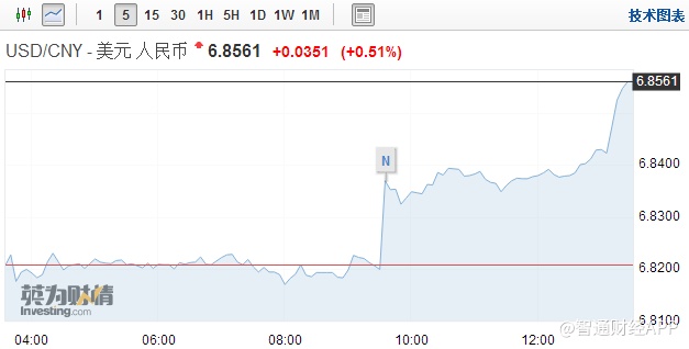美元指数走高拖累人民币下行,在岸人民币短线跌破6.85关口,现报6.8561,跌351点或0.51%。