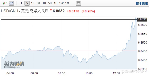 离岸人民币跌破6.86关口,现报6.8632,跌178点或0.26%。