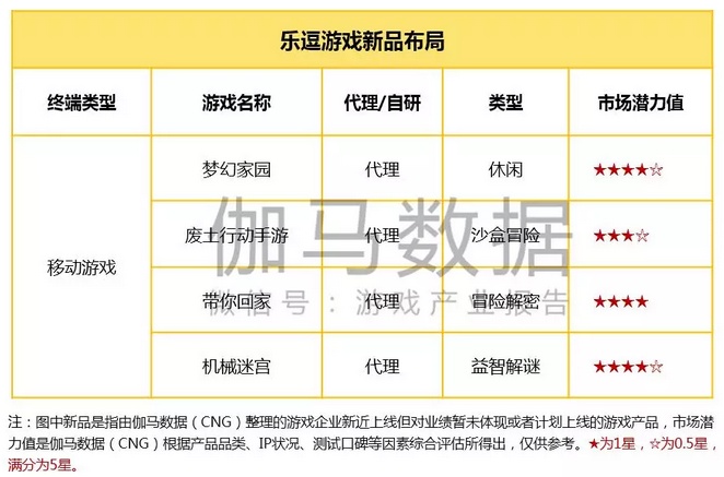 乐逗游戏以发行海外精品游戏为主要业务,其母公司创梦天地2017年营业收入达到17.6亿元,同时具备一定的研发实力和运营经验。乐逗游戏先后推出多款高月活跃用户游戏,在休闲游戏、IP移动游戏、独立游戏等细分领域拥有优势,平台拥有庞大的用户规模,2017年第四季度,平均月活跃用户达到1.2亿。乐逗游戏在新品上的布局以代理海外精品游戏为主,在产品类型方面更注重于休闲领域的游戏。独立游戏领域同样是乐逗游戏注重的领域,借助其推出的独立游戏计划indieSky,乐逗游戏获得更多精品独立游戏的资源,今年新品中包含《带你回家》《机械迷宫》两款独立游戏。《梦幻家园》《机械迷宫》是需要重点关注的乐逗游戏新品。
