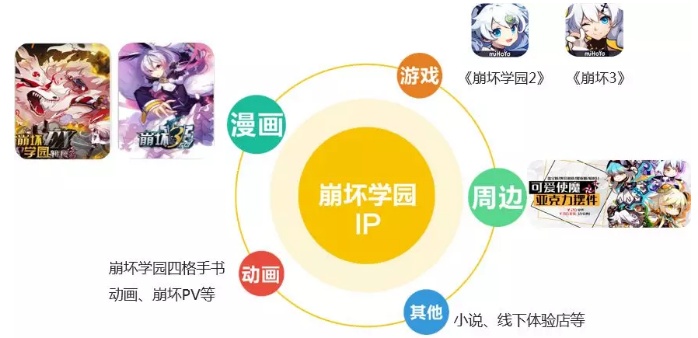 米哈游是一家以动画、漫画、游戏和小说等产品为载体,深耕二次元文化的互联网文化企业。米哈游主营业务是基于原创IP开发和运营游戏、漫画、动画和轻小说等互联网文化产品。米哈游多年来坚持深耕二次元文化,专注于开发“崩坏”系列游戏产品,营业收入保持迅速增长,2017年米哈游营业收入超过11亿元,增长率超过160%。得益于对于“崩坏”IP的深度布局和潜在价值的挖掘,米哈游表现出高利润的发展特征,未来对于“崩坏”IP的持续运营,将继续为米哈游带来收入,构建米哈游在游戏市场的独特竞争力。围绕“崩坏”IP做深度开发,延续“崩坏系列”产品线,拓展“崩坏”IP的相关项目,是米哈游未来短时间内主要的发展方向。除持续运营《崩坏3》等“崩坏”系列的游戏之外,米哈游还对“崩坏”IP进行多领域的开发与推广,通过对漫画、动画、周边产品、小说以及线下体验店等多个领域的布局推广,在进一步巩固核心粉丝的同时吸引各领域的用户群体,推进“崩坏”IP在其他领域的发展。