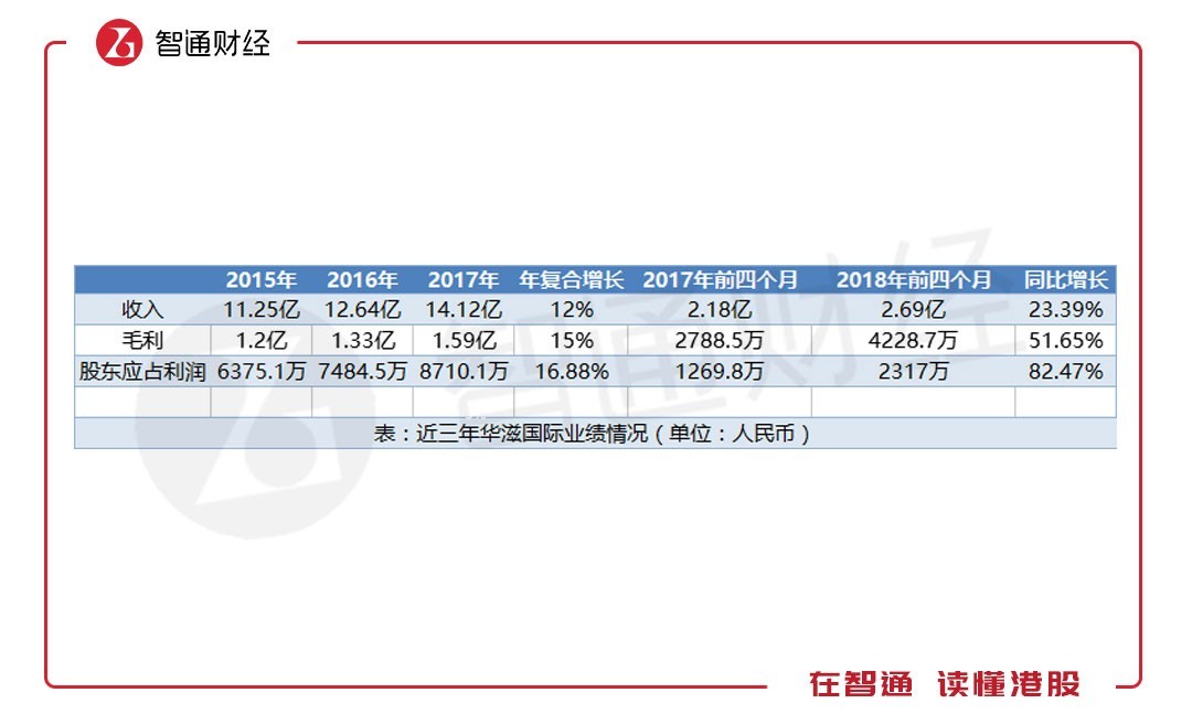 得益于海外业务的持续拓展,华滋国际近两年来业绩稳步增长。2015-2017年,收入年复合增长率为12%,毛利复合增长率为15%,股东应占利润增长率为16.88%。