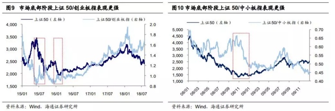 政策开始调整偏松后,市场利率下行,股市仍处底部区域,此时高股息率的价值股具有明显的收益率优势。旧的不提,最近一次的16年上证50行情其实就是这个道理。7月以来周期股较好的表现源于对财政政策的预期,但“市场低迷看业绩”才是稳道,磨底期关注消费白马没有毛病,近期的估值回调为四季度的机会提供了更大的缓冲。一旦大底渐近,情绪带动估值与风险偏好回升,机会仍然在成长股一边,放在当前的中国就是科技股。