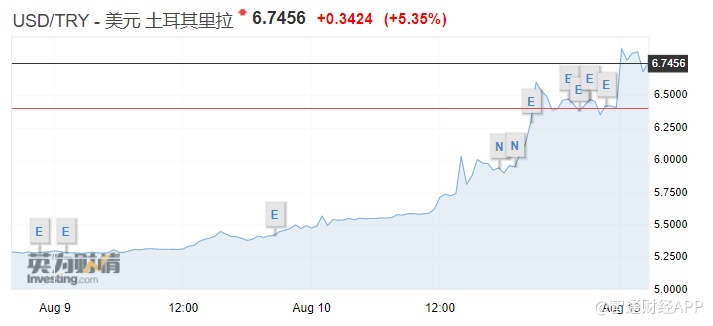 截至发稿,美元兑土耳其里拉总体仍呈上升趋势,但尾部有回落迹象。