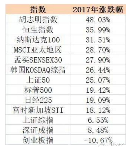 但唯独越南股市“万绿丛中一点红”。智通财经APP获悉,越南经济腾飞的势头也反映在其股市上——从2016年初的513点起步,胡志明指数两年内上涨112%。2017年更是以48%的涨幅称霸东南亚,力压日本、韩国、印度等重要市场,连续两年牛气冲天,接连刷新历史记录。