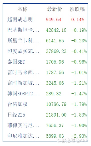 土耳其里拉暴跌,地缘政治发展导致投资者情绪受到冲击,亚太股市周一早盘下挫。避险货币汇率走高,而出口商股价走低;由于科技股延续近期跌势,韩国综合指数下跌逾1.4%,重量级三星电子持续下跌。恒生指数和日经225指数跌幅扩大至逾1.7%,上证综指跌逾1.6%。