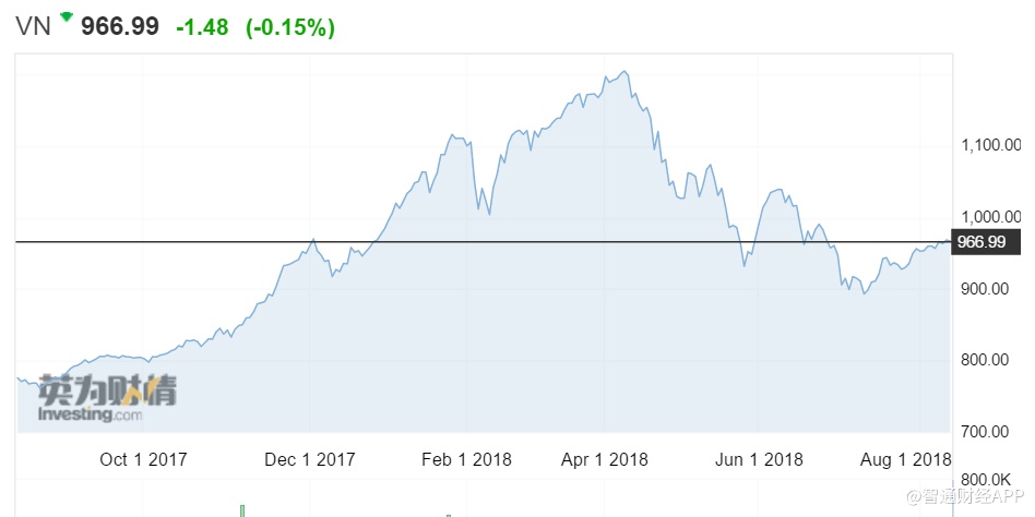 自去年年末开始,越南股指持续上扬,至今年四月达到新高。当时胡志明交易所日均交易量为3.19亿美元,汹涌的投资潮甚至一度让胡志明市交易所瘫痪。此后回吐今年以来所有涨幅,截至发稿,2018年至今小幅累跌约0.03%。