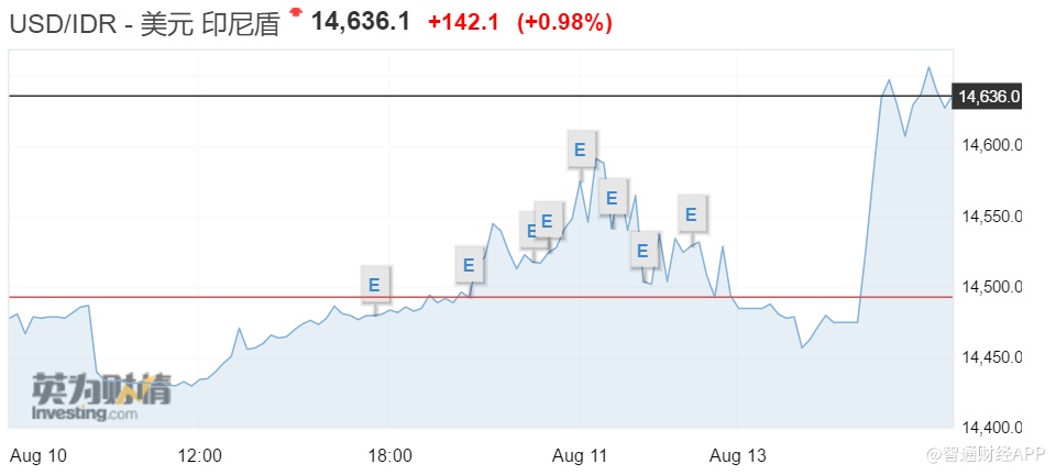 土耳其里拉的暴跌走势蔓延影响到其他新兴市场货币,南非兰特盘中跌逾10%,创下2016年来最低价;印尼盾下跌近1%至1美元兑14636.1印尼盾,创下2015年10月以来新低,成为今日表现最差的亚洲货币。智通财经APP获悉,印尼央行高层透露,已经采取措施进场捍卫印尼盾。