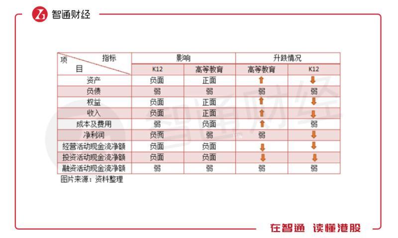 对于K12教育(含K9)而言,三张财务报表均将表现负面信息,K9资源的收购将停滞,K9原协议控制问题需要解决,而这些问题的解决可能要付出时间代价以及相关服务的费用,具有幼儿教育的转变为营利性也使得成本增加,因此资金流出会远大于资金流入,导致会计要素均出现下滑。