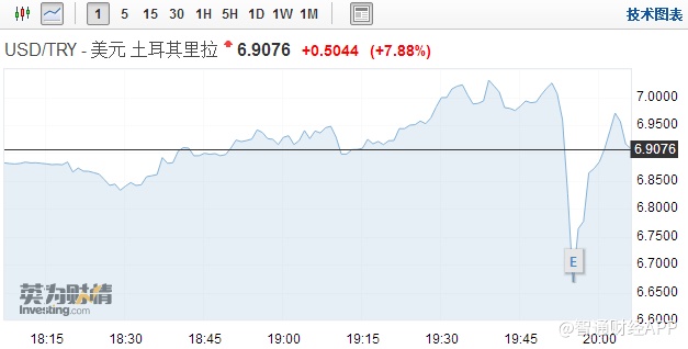 智通财经APP获悉,13日晚间,土耳其里拉曾大幅反弹,跌幅迅速缩窄至逾4%报6.6889。但随后即开始回落,截至发稿,现报6.9321,跌5289点或8.26%。