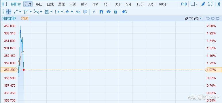 截至发稿,特斯拉股价报价359.29美元,涨1.07%,盘初股价曾一度拉涨超2%达到近363美元,但与马斯克考虑私有化的420美元价格尚有一段距离。