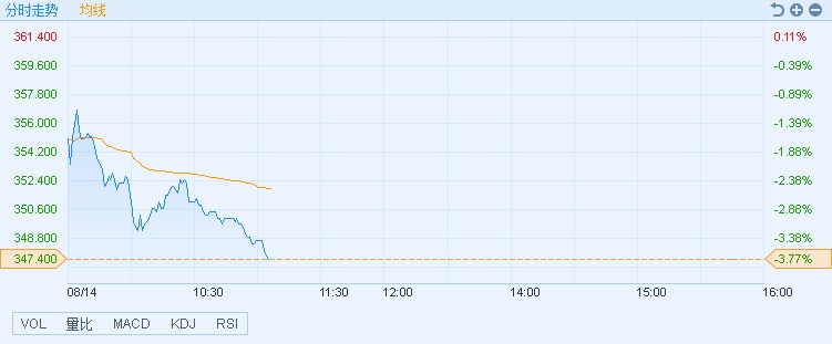 腾讯控股(00700)股价今日开盘后一路震荡走弱,截至11:05,腾讯跌3.77%,报347.4港元,成交额46亿,拖累恒指96点,今日早盘市值蒸发了近1295亿港元。腾讯将于明日公布中期业绩,麦格理近日研报中,看高其目标价至560港元。