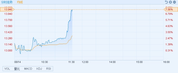 智通财经APP获悉,恒大健康(00708)股价直线拉升,逆市上涨。截至11时37分,涨7.56%,报价13.94港元,成交额1.01亿。