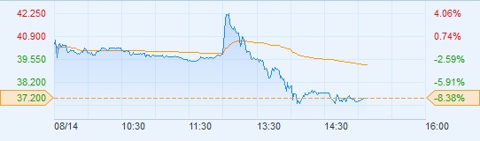 智通财经APP获悉,安踏体育(02020)今日公布2018年上半年业绩,午后最高涨至42.5港元后回落下跌。截至15:05,下跌8.5%,报37.15港元,振幅达15.15%,成交额8.65亿港元。