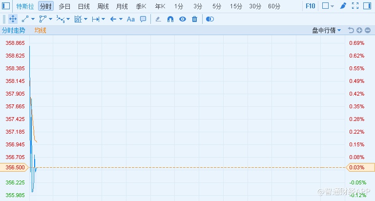个股方面,早前有消息称,特斯拉(TSLA)成立委员会来评估可能的私有化要约,特斯拉开盘大幅波动,现报356.5,涨0.03%。