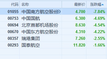 智通财经APP获悉,美元指数近期强势上涨并创13个月新高,导致人民币兑美元跌破6.9,受此影响,航空板块今日走弱。截至13时57分,中国南方航空股份(01055)跌7.84%,中国国航(00753)跌4.69%,中国东方航空(00670)跌4.22%。