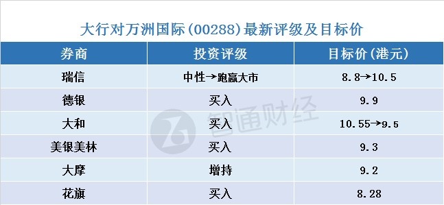 二、大行对万洲国际(00288)最新投资评级及目标价