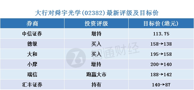 三、大行对舜宇光学(02382)最新投资评级及目标价