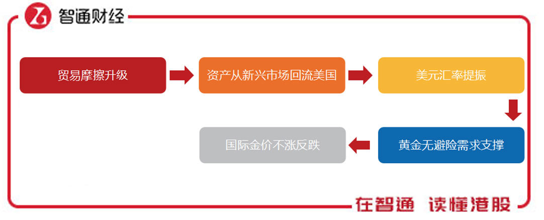 智通财经APP研究发现,因为贸易战引发的市场避险情绪,最直接引发的反应是避险资金由新兴市场回流美国,提振美元汇率,国际金价并没有受到避险需求的支撑。同时,美国经济的稳定性也是拖累黄金市场重要因素之一。经济内生发展同样推动了美股的上涨,黄金因而在本轮贸易摩擦升级中不涨反跌。