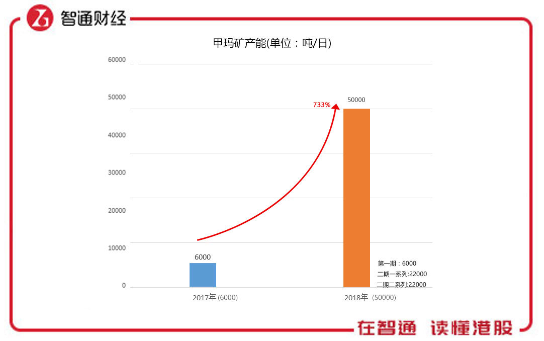 甲玛二期扩建包括两个系列,即第一个系列和第二个系列,每个系列的矿石处理能力均为2.2万吨/日。据悉,甲玛二期扩建目前已经开始贡献利润,产能开始扩张。随着甲玛矿二期第二系列提前一年于6月底实现了商业化生产,甲玛矿的每天矿石处理能力增加至每天接近5万吨。公司在年初给予今年产铜1亿磅是基于一个系列每天矿石处理量2.2万吨计算,现在由于二系列商业化生产的提前实现,矿石处理力大幅提升78%,保守估计,今年的铜出产量,将较年初估算增加20-30%,产能爆发力旺盛。