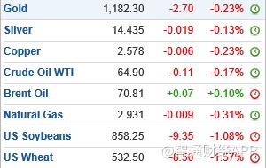 隔夜数据显示,美国上周原油库存意外增加,拖累油价下挫,周三,纽约期油收报每桶65.01美元,跌2.03美元或3.03%,创6月6日以来收市新低。布伦特期油收报每桶70.76美元,跌1.7美元或2.4%,创4月9日以来收市新低。