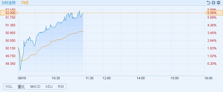 智通财经APP获悉,中银航空租赁(02588)昨日公布中期业绩,中期净利增长24%至2.97亿美元,今日股价一度涨至52.25港元,创新高。截至11时23分,涨5.48%,报价51.95港元,成交额1.02亿。