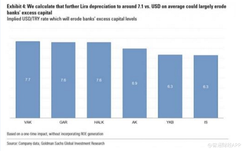 “外汇借款使土耳其机构十分脆弱”,法国巴黎银行分析师如此说道。而高盛的一份报告对惊慌失措的债券持有人来说更是当头一锤,“若里拉跌至7.1,则土耳其银行部门的资本过剩也会被彻底抹平。”