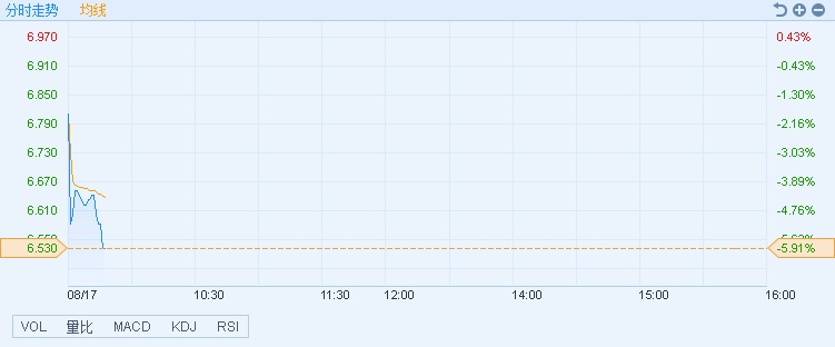 智通财经APP获悉,中国中车(01766)股价下挫,截至9时46分,跌5.91%,报价6.53港元,成交额9255.34万。