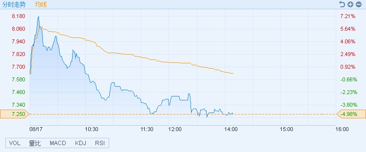 智通财经APP获悉,受产业政策影响,医药股普跌。次新股歌礼制药-B(01672)今日高开低走,盘中一度跌至7.21港元,再创新低。截至14时08分,跌4.98%,报价7.25港元,成交额1927.92万。