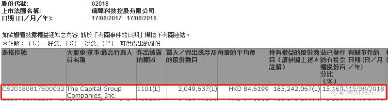 增持瑞声科技(02018)205万股,每股作价84.6199元,总值1.73亿元,最新持股量增至15.16%。