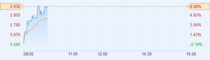 智通财经APP获悉,中国通信服务(00552)今日再创新高,截至10:15,涨6.08%,报5.93港元,成交额3203万港元。
