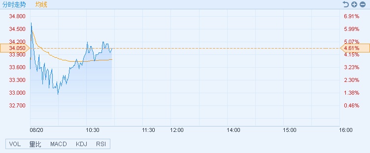 智通财经APP获悉,华润啤酒(00291)上周五(8月17日)公布中期业绩,净利润为15.08亿元,同比增长28.89%。截至10时56分,涨4.61%,报价34.05港元,成交额2.26亿。