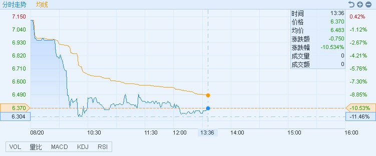 智通财经APP获悉,海丰国际(01308)上周五(8月17日)公布中期业绩,今日股价挫逾一成,截至13时34分,跌10.53%,报价6.37港元,成交额1551.29万。