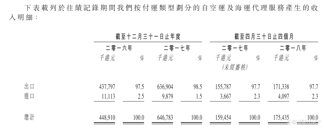 为把握跨境电子商务销售的快速增长所带来的商机,公司自2016年起一直向若干从事电子商务物流业务的货运代理提供有关电子商务货物的空运货运代理服务。凭借于空运货运代理行业的庞大资源及丰富的专业知识,安排空运快速小包运货(即一般自收到货件起72小时内交付)。大部分电子商务货物乃送至澳洲、美国及英国。
