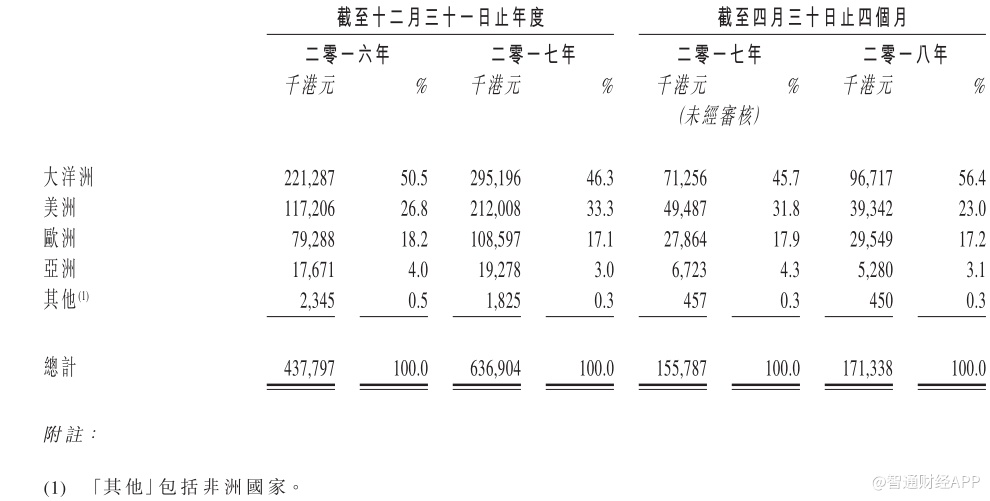 招股书显示,截至2016年及2017年12月31日止年度,公司总收入分别为4.49亿港元、6.47亿港元。截至2017年及2018年4月30日止4个月,总收入分别为1.59亿港元、1.76亿港元。