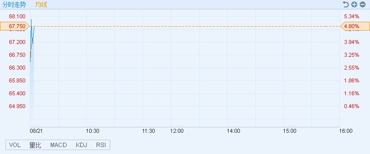 智通财经APP获悉,药明生物(02269)昨日公布中期业绩,净利润为2.5亿元人民币,同比增长170.7%。早盘高开,截至9时33分,涨4.8%,报价67.75港元,成交额2378.81万。