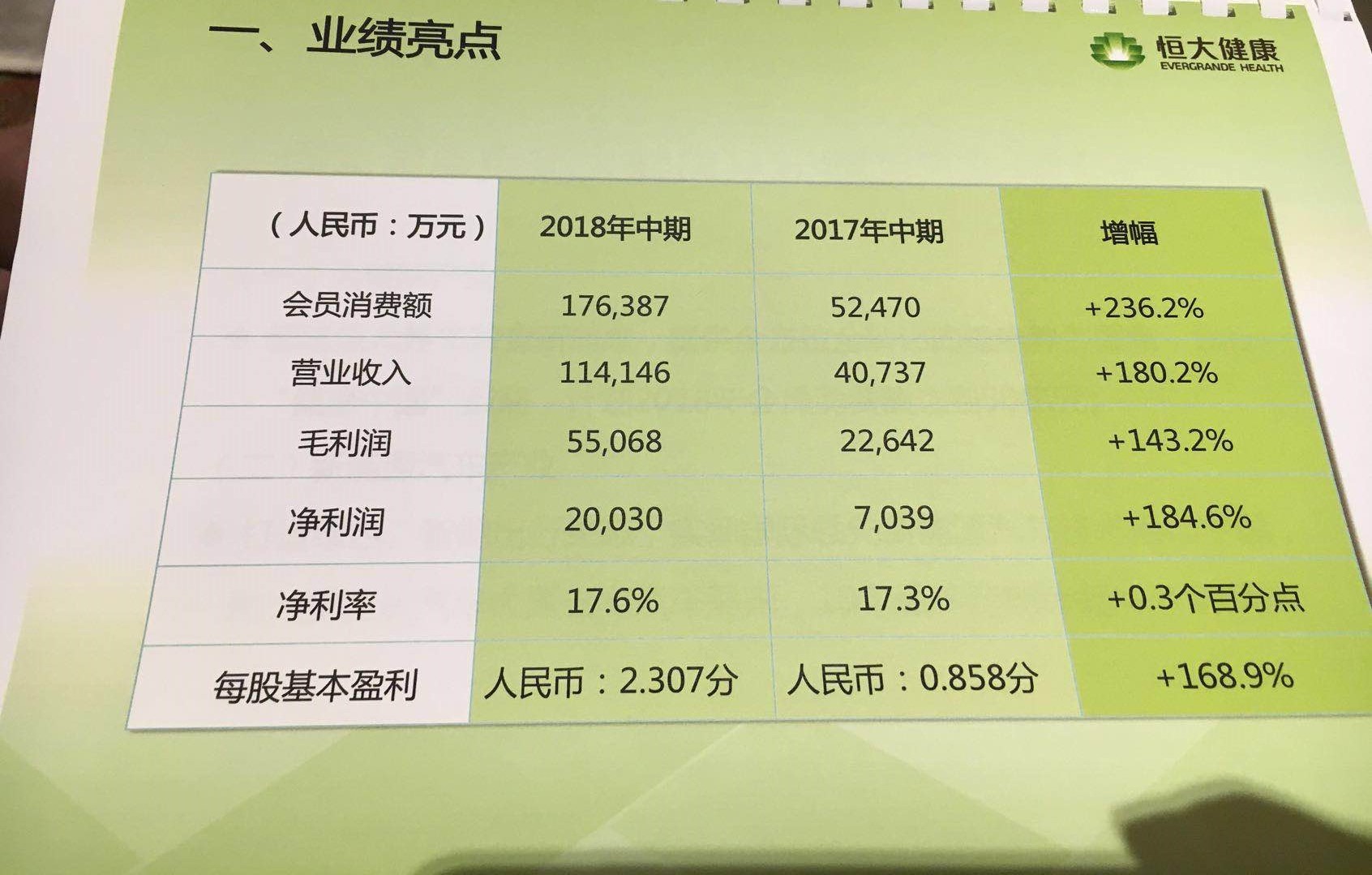 公告显示,健康管理分部,截至2018年6月30日止6个月,该集团的会员消费额已达到约17.6387亿元,相比起截至2017年6月30日止6个月的会员消费额约5.2470亿元,增幅约236.2%。