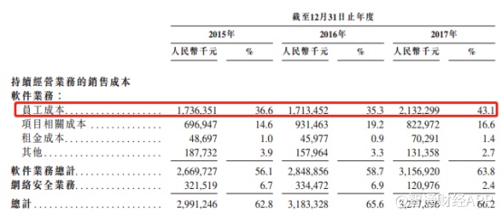 通过深入观察,智通财经APP发现,公司的销售成本多数用于支付员工开支。从公司销售成本的分部数据来看,2015-2017年,公司员工成本占公司销售成本分别为36.6%、35.3%及43.1%。