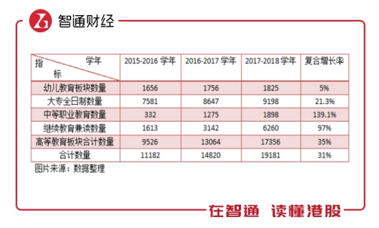 说完学费,接下来就是学生数量了。智通财经APP了解到,排除掉特殊年份的学年(2014-2015学年),21世纪教育近三个学年的学生人数复合增长率达到31%,2018年上半年学生数量达到21682人,同比增长达46.3%,成长力旺盛。